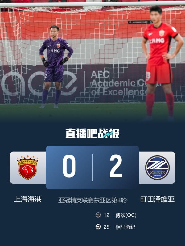 10月21日讯 亚冠精英联赛第3轮,海港0-2不敌町田,面对3个J联赛对手一场未胜,1平2负进1球丢6球。